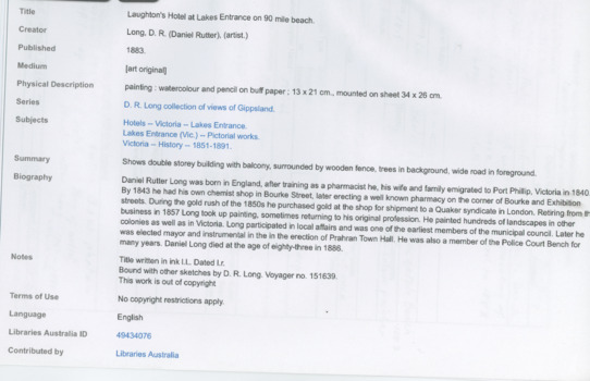 coloured copy of a water colour painting by Daniel Rutter Long. plus another black and white sketch 05544.1 plus the story of the painter 05544a