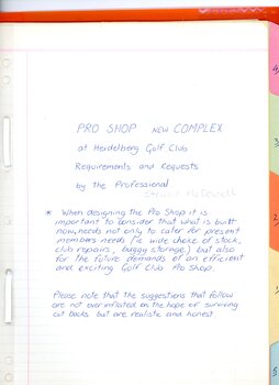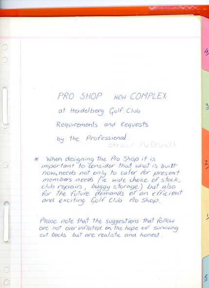 Administrative record - Report, Struan McDowell, New Pro shop complex at Heidelberg Golf Club 1993, 1993