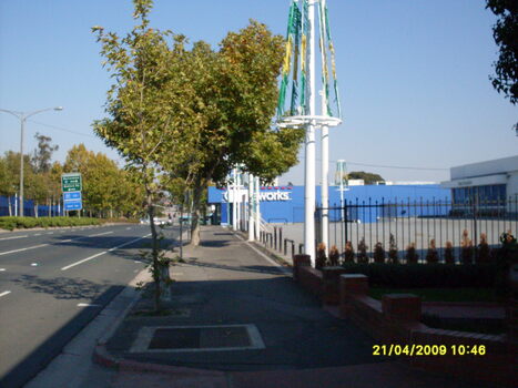 Photograph, Looking west down Maroondah Highway from former Firestation showing Officeworks, on 21 April 2009