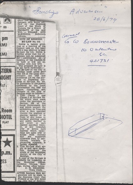 Container - National Trust Collection: City of Bendigo By-Law No. 114 published in Bendigo Advertiser 28/06/1979, 28/06/1979