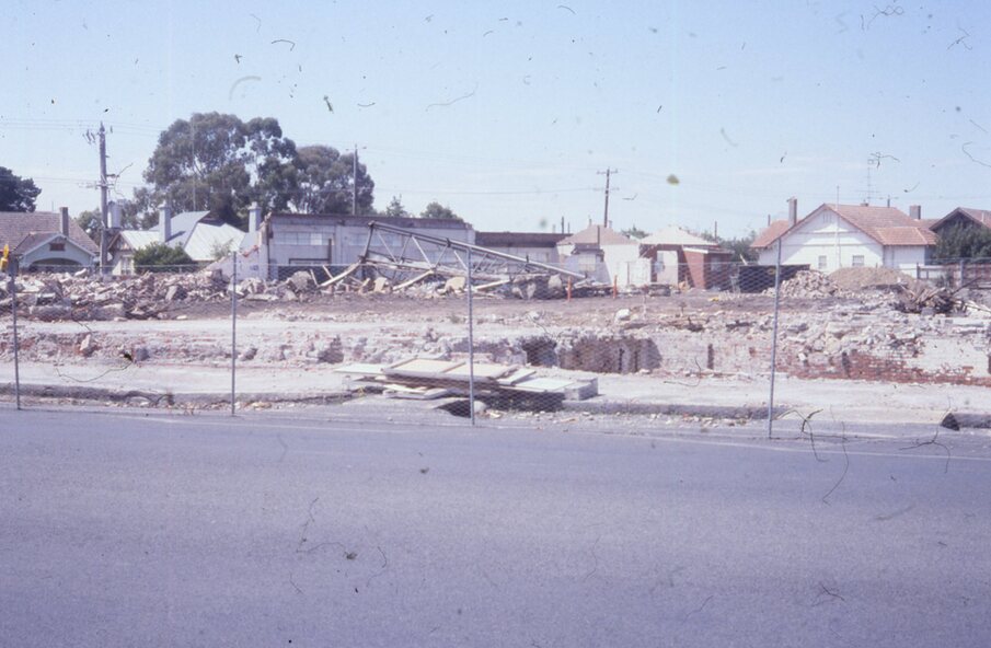 Set of three colour slides of the demolition of the former ESCo.SECV Wendouree Parade Power Station - slides dated Sept. See also item 1140 for other photos. Photos by David Frost 1993.
