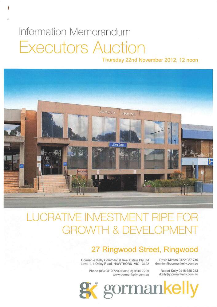 Document - Information Memorandum, Executors Auction - Business Property (Abacus House), 27 Ringwood Street, Ringwood, Victoria - 22nd November, 2012