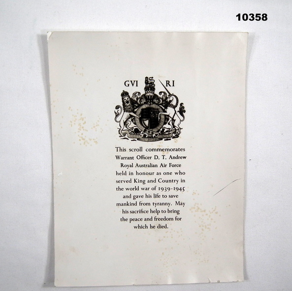 Certificate - REMEMBERENCE SCROLL