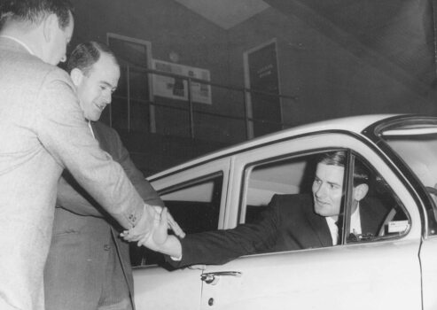 Photograph, Bill Patterson Motors Ringwood- Presentation of car to Captain Essendon Football, Ken Fraser. c1965
