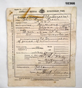 Administrative record - CERTIFICATE OF DISCHARGE, WW1
