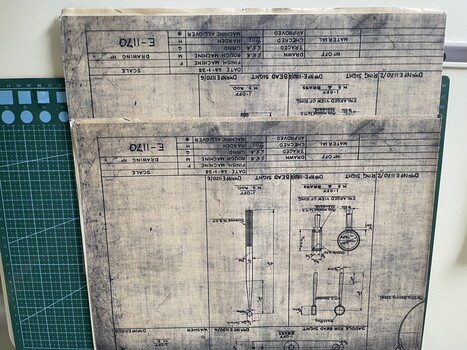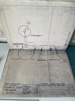 Drawing (Item) - 2x Copies of drawings E-1170 (as per photos), RAAF Tech Dept - blueprint drawings - Ring & Bead Sights for Lewis Gun (unknown aircraft - biplane 2 seater)