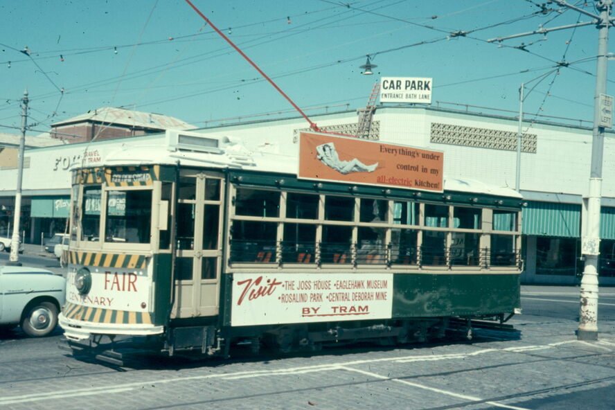 Set of five slides of Bendigo trams taken at Charing Cross - Pall Mall, View St and Mitchell St, taken by Warren Doubleday on 27/3/1970