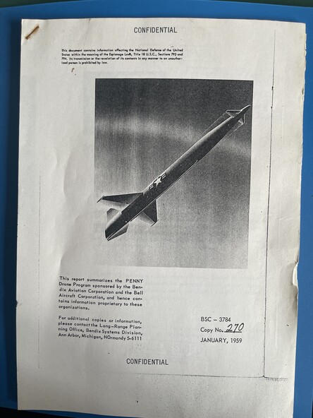 Document (item) - GAF Collection - included in blue folder with Turana - Australia's Naval Target Aircraft (reprint from Aircraft June, 1970), GAF Collection - Report on Bendix-Bell Penny 1C Powered Target Drone, Jan 1959