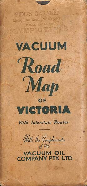 Envelope - Pidd's Garage Melbourne Road Newport Local Dealer Olympic Tyres Vacuum Road Map of Victoria with Interstate Routes with the compliments of the Vacuum Oil Company Pty Ltd.
