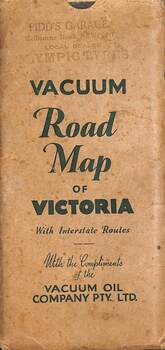 Road travelers relied on foldable paper maps to chart their journeys, especially when venturing beyond familiar territory. Maps helped identify highways, towns, and landmarks, enabling drivers to choose efficient or scenic routes. These maps were indispensable tools for travel, planning, and exploration. This map also identified the location of Vacuum Oil Company Dealerships throughout Victoria.