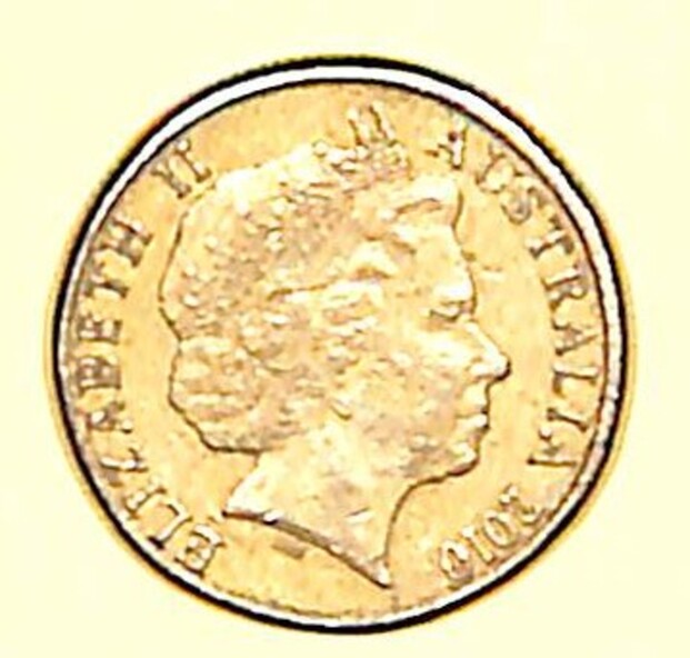 Australian One Dollar Coin. The obverse side features the portrait of Queen Elizabeth II. The reverse side features the international symbol for girl guides, the Trefoil of three leaves which represents the threefold promise made by all girl guides and brownies throughout the world.