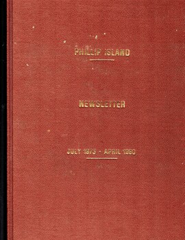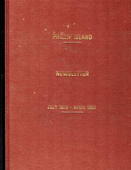 Red hard cover, bound copy of foolscap sized typed newsletters.
