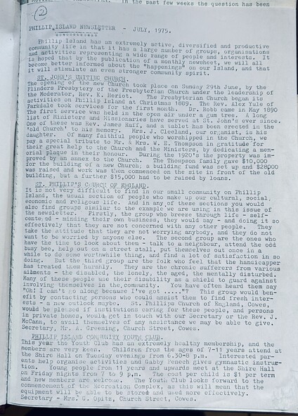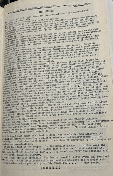 A monthly community newsletter to promote local groups. Produced by Anne Davie. There were no local newspapers at this time.